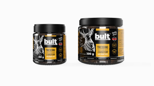 – dzika przyjemność dla Twojego psa Treserki z dziczyzny to smak prosto z polskiego lasu. Twój pies nie odmówi dzikiego smaku i wykona wszystko za odrobinę pyszności od bulta. Treserki z dziczyzny – przeeedzikie kąski! Połącz przyjemne z pożytecznym – naukę nowych sztuczek z pysznymi kąskami. Nagradzaj czworonoga w trakcie szkolenia przedzikimi treserkami. Smakowite kawałki pełne dzikiej przyjemności z pewnością podniosą motywację do pracy twojego czworonoga. Treserki z dziczyzny – wygoda dla opiekuna Skład: Mięso i produkty pochodzenia zwierzęcego 75%(w tym dziczyzna 20%), produkty pochodzenia roślinnego, żurawina, 1,5%, gliceryna, sól, rozmaryn 0,5% Skład analityczny: Białko surowe : 31.9% Tłuszcz surowy…